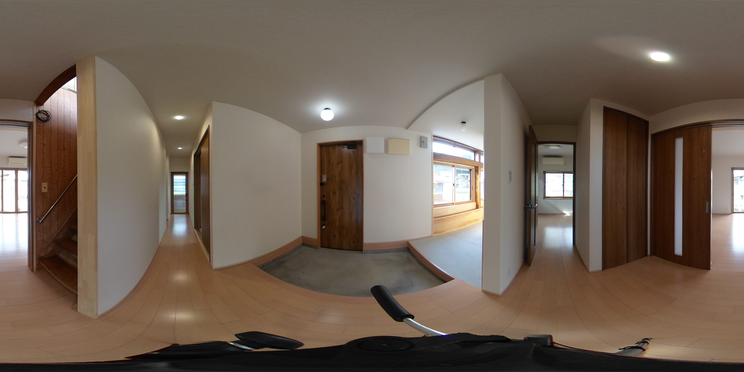 既存玄関引き戸からドアに交換して断熱性を高め、ドアに変更することにより暗くなる玄関を土間スペースと併設し、開放的な空間と採光を得る事ができました。